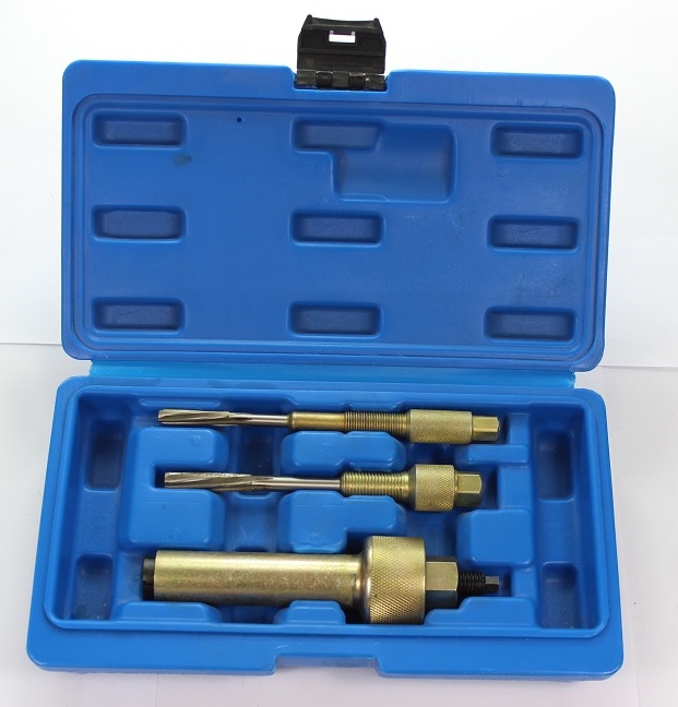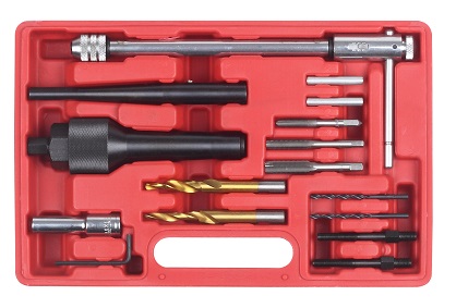 Zestaw przeznaczony jest do wyciągania i demontażu urwanych świec żarowych oraz regeneracji gwintu w głowicy podczas wymiany świec.