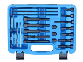 Zestaw przeznaczony jest do wyciągania i demontażu urwanych świec żarowych. Pasuje do wszystkich typowych modeli świec żarowych. Trzpienie wkręca się do pozostałości świecy i po dokręceniu młotka bezwładnościowego wybija się świecę z gniazda.